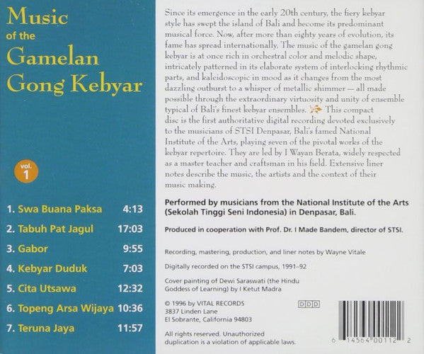 Music Of The Gamelan Gong Kebyar Vol. 1 MUSIC AUDIO CD indian musicians Gamelan