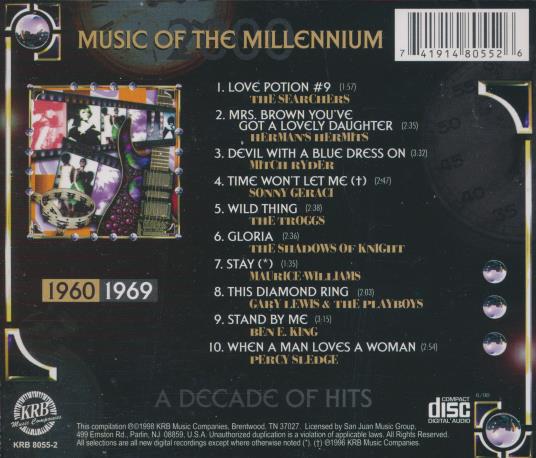Music Of The Millennium: A Decade Of Hits: 1960-1969 AUDIO CD 60s pop rock KRB