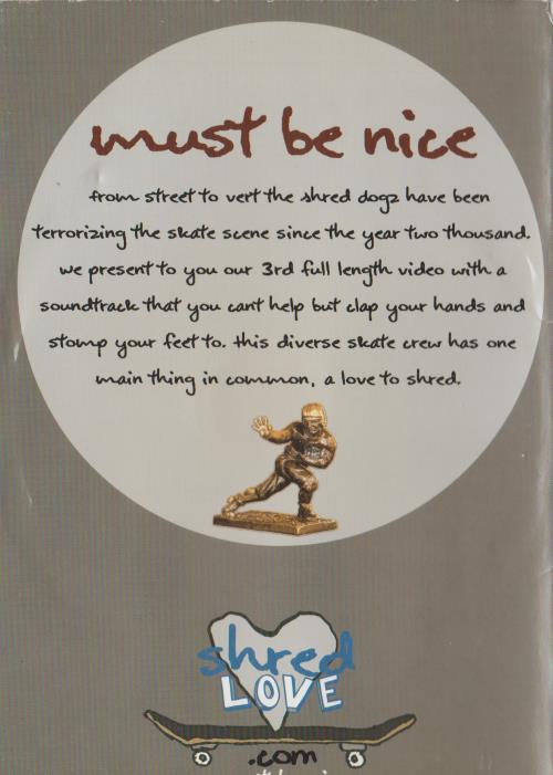 Must Be Nice: Brought To You By The Shred Dogz DVD VIDEO skating skaterd 3rd