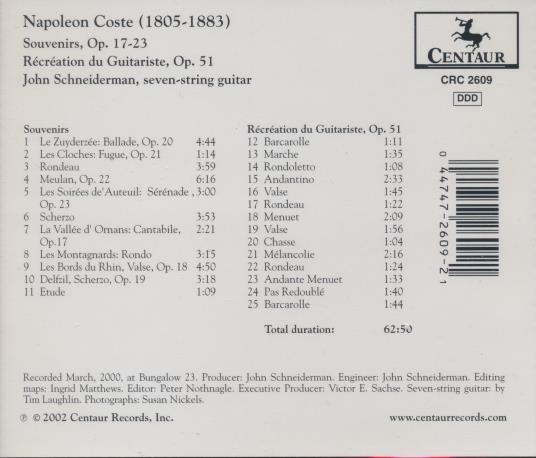 Napoleon Coste / John Schneiderman: Souvenirs, Op. 17-23; Recreation Du Guitariste, Op. 51