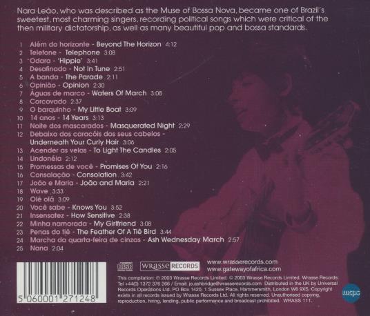 Nara Leão was described as the Muse of Bossa Nova and became one of Brazil's sweetest, most charming singers. She recorded both delicate bossa nova standards and outspoken political songs that criticised the military dictatorship of her era. Her clear, intimate vocal style helped popularise Brazilian popular music at home and abroad. This compilation gathers many of her essential tracks and highlights her range from pop to bossa.