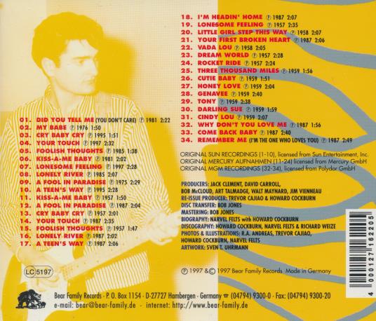 Narvel Felts is a rockabilly artist known for his blend of Rock and Rockabilly styles. This album, released by Bear Family Records, showcases a collection of his memorable songs from various years.