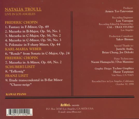 Natalia Troull: Live In Los Angeles MUSIC AUDIO CD classical solo piano Chopin
