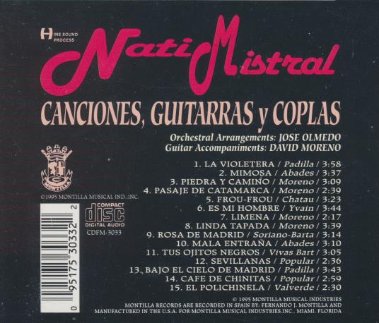 Nati Mistral: Canciones, Guitarras Y Coplas MUSIC AUDIO CD Latin Spanish songs!
