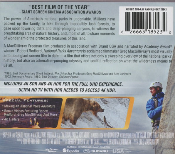 A MacGillivray Freeman film produced in association with Brand USA and narrated by Academy Award® winner Robert Redford, National Parks Adventure is acclaimed filmmaker Greg MacGillivray's most visually ambitious giant-screen film to date—a film that offers not only a sweeping overview of the national parks' history, but is equal parts adrenaline-pumping odyssey and soulful reflection on what the wilderness means to us all.