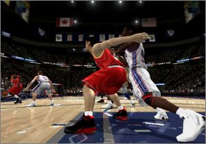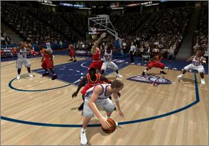 NBA Live 2004 continues EA SPORTS' basketball series with a renewed emphasis on control within the paint and an updated graphic engine. Continuing the Freestyle Control introduced in NBA Live 2003, players can modify moves, dunks, passes, and more in real-time while driving toward the basket. Team sets like the pick-and-roll or triangle can be switched at the press of a button, and the defense has been addressed to make it as crucial a part of the game as the offense. New computer AI, animations, and rebounding controls are designed to help balance out the gameplay on both sides of the court. As in previous installments, players will be able to choose from 30 NBA teams, albeit with new 3D player models and more detailed stadiums complete with championship banners, retired jerseys, and sideline activity.