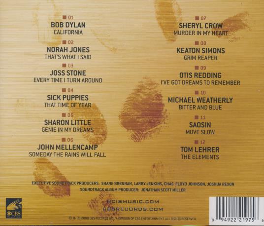This compilation features songs from the hit television series NCIS. Various well known artists contribute a mix of rock, pop, soul and singer-songwriter material that complements the show tone. The collection ranges from classic performers like Bob Dylan and Otis Redding to contemporary acts like Joss Stone and Saosin. Actor Michael Weatherly also contributes a song, reflecting the close ties between the series and its music.