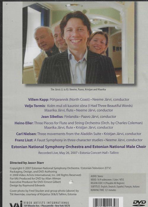 Jarvi conducts the Estonian National Symphony Orchestra and Estonian National Male Choir. Other conductors include Paavo Jarvi and Kristjan Jarvi with Maarika Jarvi, flute, and Juhan Tralla, tenor. Included are works by Villem Kapp, Veljo Tormis, Sibel.