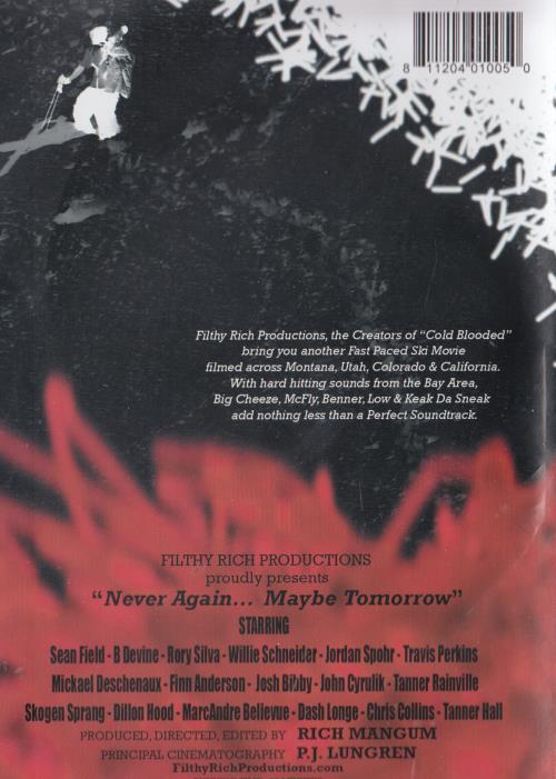 Never Again... Maybe Tomorrow DVD VIDEO MOVIE MUSIC ski adventure Filthy Rich