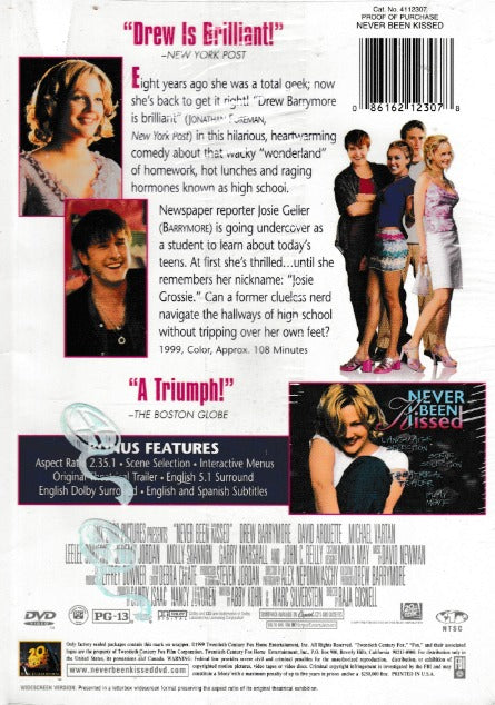 Never Been Kissed DVD VIDEO MOVIE Drew Barrymore David Arquette comedy NEW SEAL