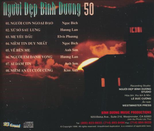 Recording Studio: Người Đẹp Bình Dương Studio. Hòa âm, thu âm & Mix: Lê Đức Cường. Ân loát: Westminster Press. Produced by Bình Dương Music Productions.
