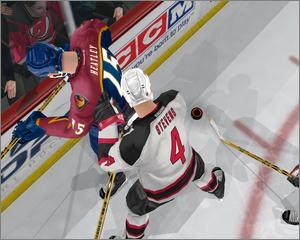 Another enhanced feature is the fighting engine, which is no longer a button-mashing substitute for boxing. Players will be able to chain moves from a grappling position, offering more strategic possibilities during encounters instead of rewarding those with quick reflexes. The collisions that often lead to fights have also been juiced up with more dramatic camera angles and new motion-captured animation. To help maintain its position as the best-selling hockey series, NHL 2004 fixes a number of presentation issues and promises a more realistic experience with computer players individually reacting to in-game situations rather than preset strategies.