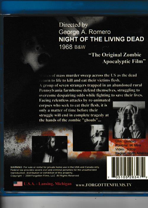 Night Of The Living Dead BLU-RAY MOVIE VIDEO Halloween 1968 George A. Romero B&W