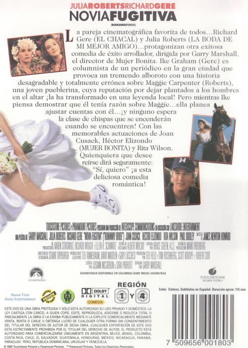 Novia Fugitiva DVD VIDEO MOVIE Spanish Julia Roberts Richard Gere comedia 1999