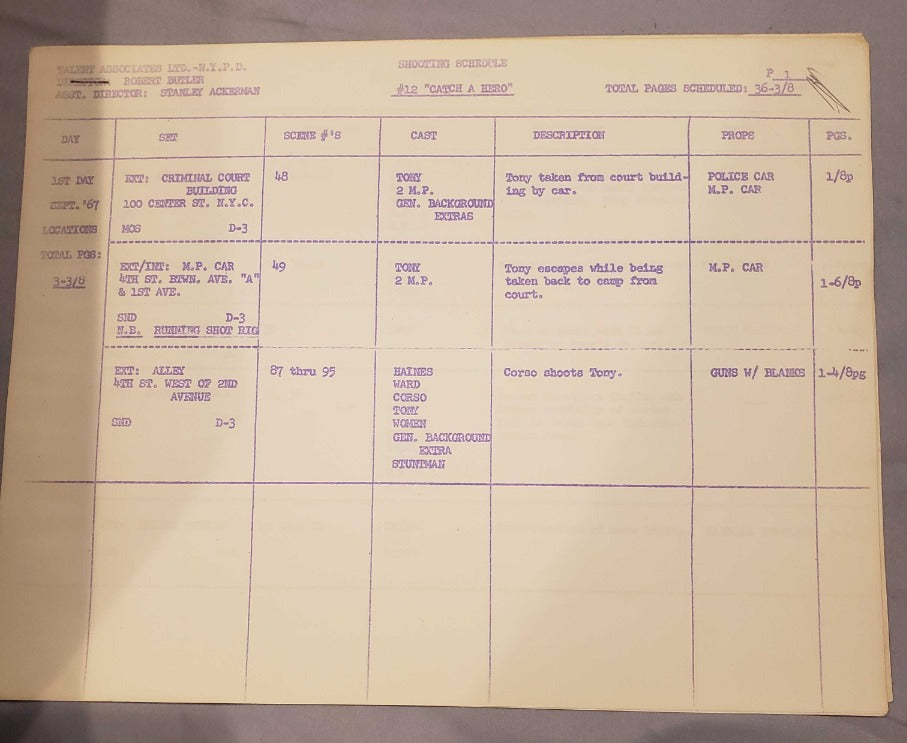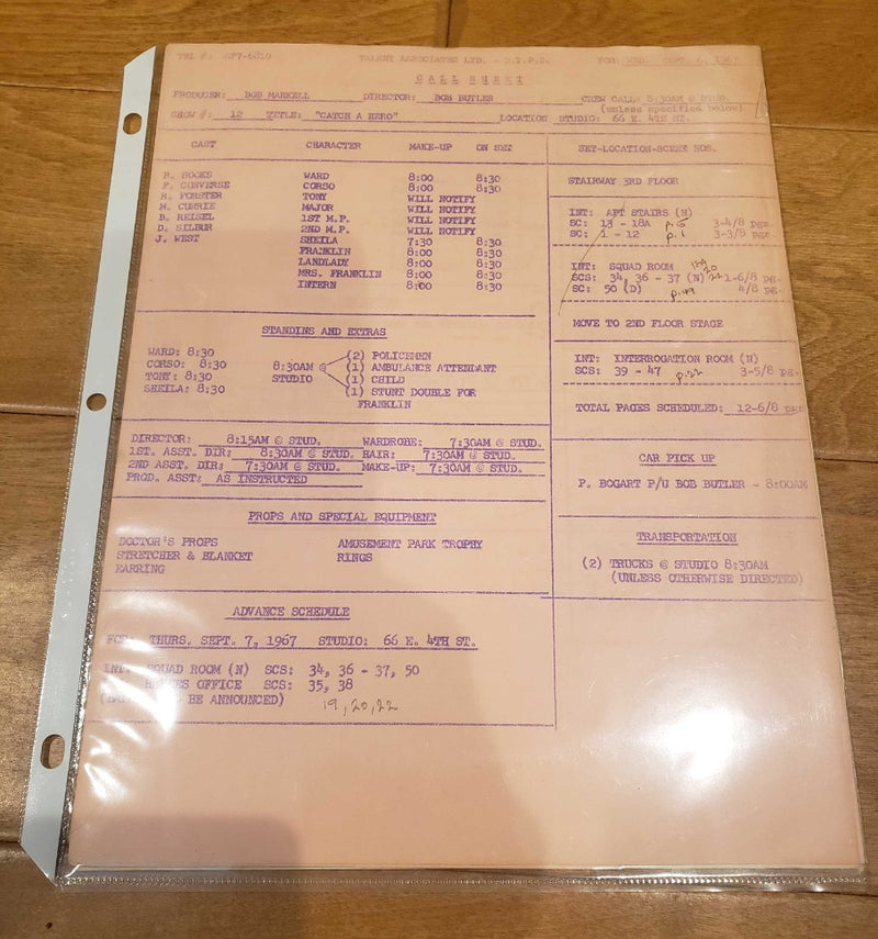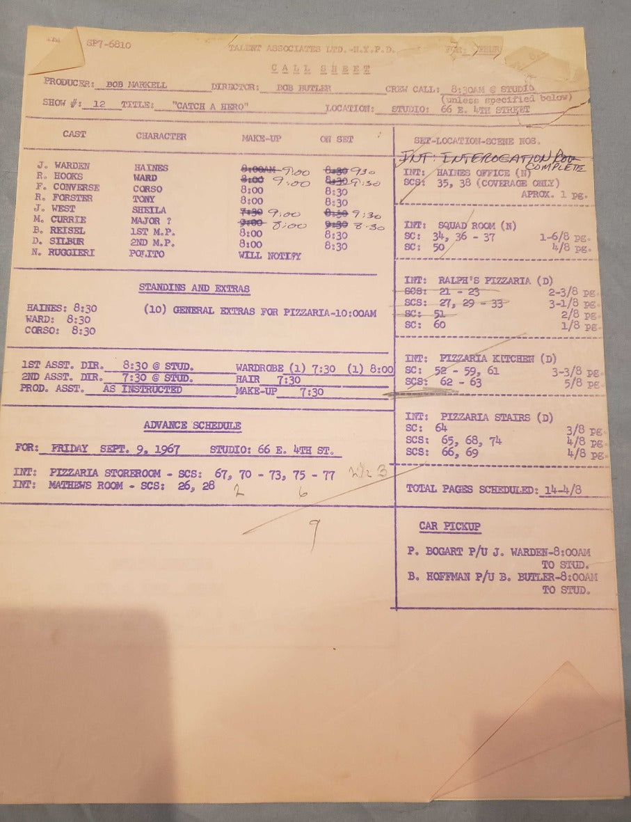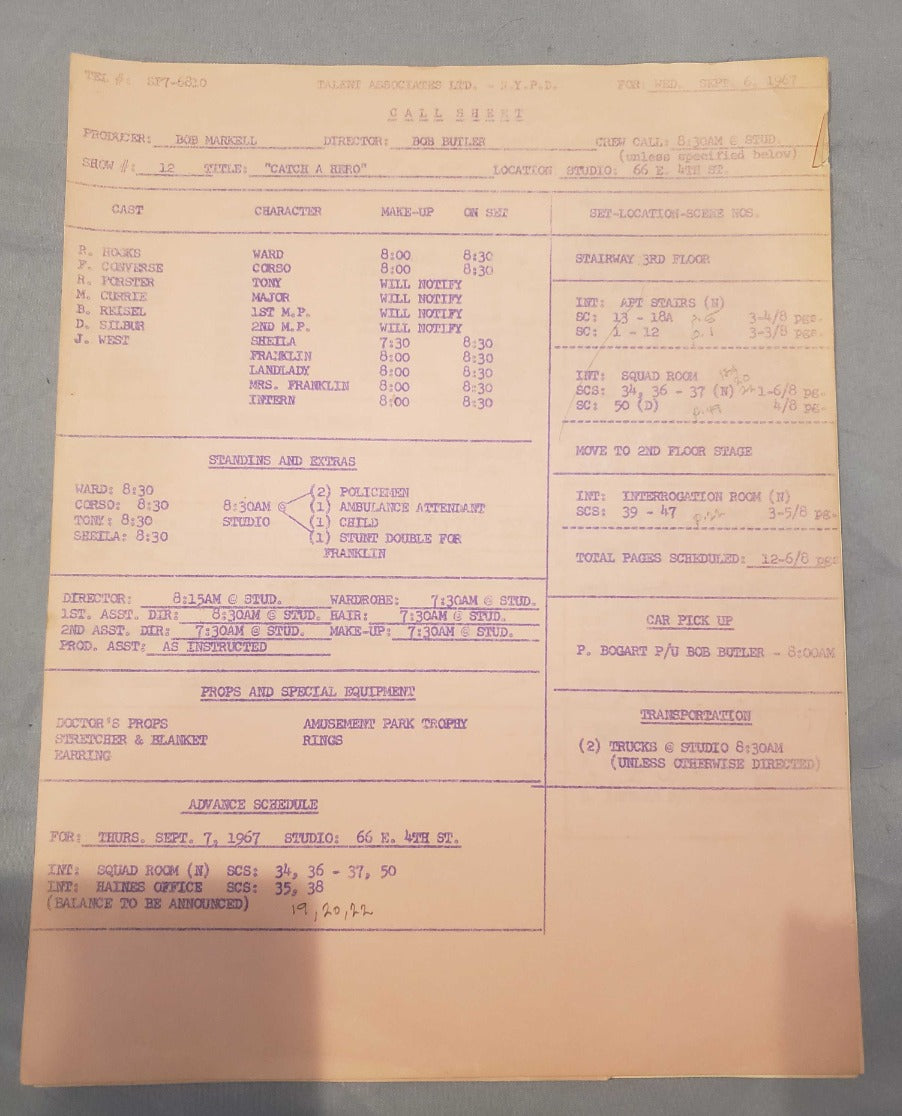 These are rare memorabilia due to both the age along with the fact it contains notes from the director. A great one of a kind set for any collector of the 1960s N.Y.P.D. police drama history!