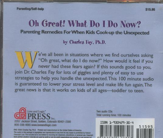 Oh Great! What Do I Do Now? Abridged AUDIO BOOK CD Charles Fay parenting SEALED