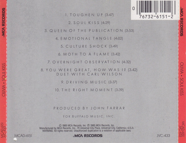 Olivia Newton-John: Soul Kiss MUSIC AUDIO CD synth-pop rock! 1985 MCA Records