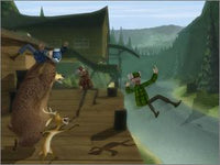When city bear Boog is led into the forest by a mule deer named Elliot, it becomes Open Season for any unlucky hunters who happen to cross the bears path. Raised by Beth the park ranger, Boog is not used to living in the wild, and must tap into his instinctual abilities to make it back to Beth's garage in one piece. Players will guide Boog and Elliot through the forest using their environment to scare hunters away before they make a rug out of Boog's domesticated hide.