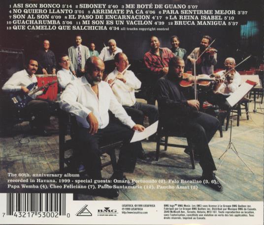 The 60th anniversary album recorded in Havana, 1999 - special guests: Omar Portuondo (6), Folo Bacallao (3, 6 & 9), Papa Wemba (4), Cheo Feliciano (7), Pacho Santamaria (12), Panchito Amat (3).