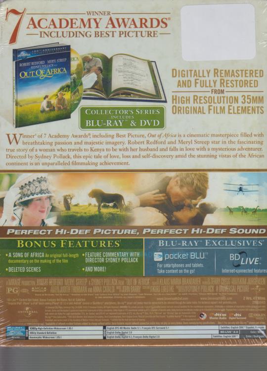 Out Of Africa 100th Anniversary Collectors 2-Disc w/ Book BLU-RAY DVD NEW SEALED