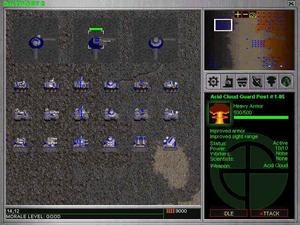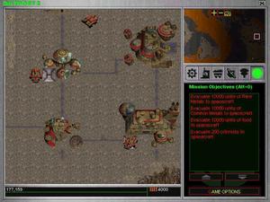 More than 140 vehicles and buildings, 60,000 frames of animation and a wide array of natural disasters such as volcanoes, meteor showers and more await you in this survivalist adventure. Multi-player action for up to six players is supported via LAN or Internet and two through modem or serial connections. Scenario types of multi-player action include Last One Standing (king of the hill), Midas (fixed amount of time), Resource Race (predetermined amount of common and rare metals as a target), Space Race (first to construct a spaceship) and Land Rush (random deployment of bases with the last two surviving colonies finishing the game in Last One Standing mode).