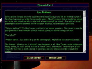 Reconciliation between the groups, although tried on several occasions, failed. The satellite link between the two colonies was irrevocably extinguished. The Eden colonists went ahead with plans for terraforming while those at Plymouth prepared to defend their rights on New Terra. Neither group was prepared for the astonishing and cataclysmic geological upheaval about to tear their world apart.