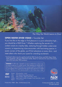 OPEN WATER DIVER VIDEO — Two-disk Set If you live life on the edge or find pleasure in a pure adrenaline high... you should be a PADI Diver. * Whether exploring the secrets of a sunken wreck at a nearby lake, venturing through hidden underwater caverns, or experiencing close encounters with fascinating species in exotic corners of the globe, you'll find adventure on every dive — and meet others who share your quest for unending excitement. * Enclosed videos may be used for both the PAD! Scuba Diver and PADI Open Water Diver programs. Ask your PAD! Dive Center, Resort or Instructor for more information about this and other PADI products.