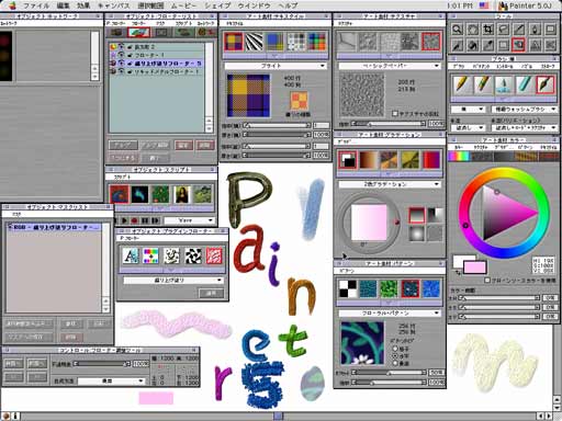 Painter 5.5 sports the same interface as version 5, a somewhat palette-heavy, complicated affair that more or less succeeds in organizing the program's many tools and variants. Painter also makes extensive use of floaters, similar to layers in Photoshop. However, unlike Photoshop layers, floaters can be different sizes and can function as plug-in utilities as well as image repositories.