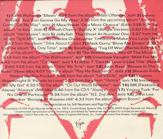 This compilation album includes tracks from artists like Keith Richards, Lenny Kravitz, Maxi Priest, Joan Baez, and more. It features both original and edited versions of songs from popular albums as well as exclusive edits made for this release. Notably, it contains a mix of singles, album cuts, and radio edits.