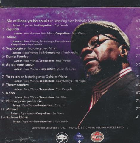 Papa Wemba is a legendary Congolese singer and bandleader known for modernizing Congolese rumba and soukous. This album blends classic rumba rhythms with contemporary production and features guest vocalists including Nathalie Makoma, Nash and Ophélie Winter. The songs are performed in French and Lingala and range from upbeat dance tracks to reflective midtempo numbers. The record highlights Papa Wemba’s smooth vocal delivery, rich arrangements and urban African pop sensibility.