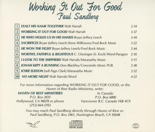 Paul Sandberg: Working It Out For Good MUSIC AUDIO CD 90s Christian 1990 Haven
