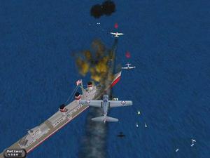 Players defend the islands and the mainland in this combat flight game from Simon & Schuster. Players take a top-down view of their planes to engage in deadly bombing runs and head-on dogfights. Fourteen different aircraft become available through the course of the game, including the Corsair and the B-25 bomber. The game's ten missions are all based on actual events that took place during the war.