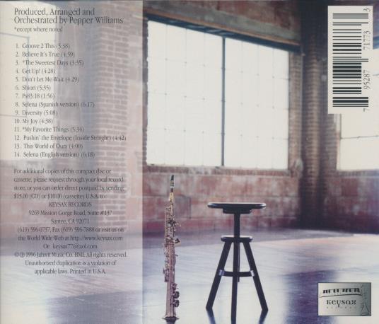 Produced, Arranged and Orchestrated by Pepper Williams. © 1996 Jahvit Music Co. BMI. All rights reserved. Printed in U.S.A. Released on Keysax Records.