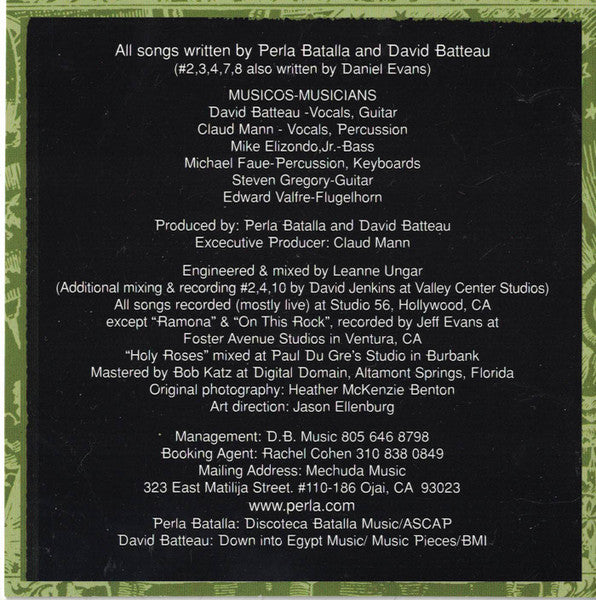 Perla Batalla primarily performs music that blends elements of Latin, folk, and world music. Her style often incorporates soulful and emotive vocals with influences from jazz and pop. She is known for her introspective and lyrical songwriting, which reflects her Mexican-American heritage. Batalla's music tends to have a warm, acoustic sound that emphasizes storytelling and cultural roots.