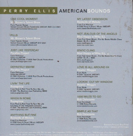 Perry Ellis Presents American Sounds PROMO w/ Artwork MUSIC AUDIO CD Supagroup +