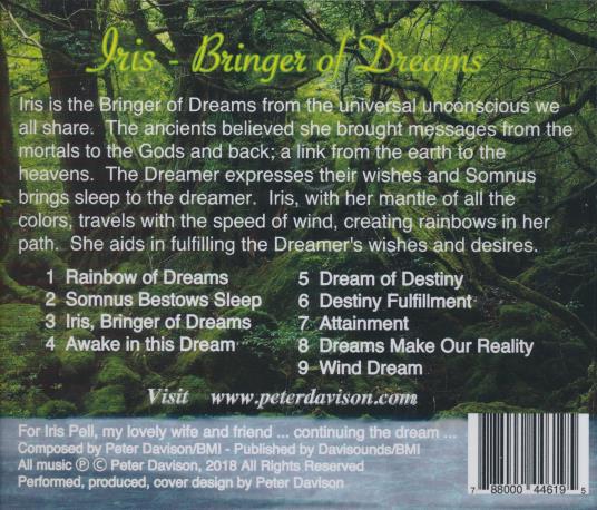 Peter Davison is a composer, performer and producer who creates music inspired by myth and the dream world. This album draws on the figure of Iris and explores themes of sleep, destiny and inner journeys. The music is gentle, meditative and richly atmospheric, suited to relaxation and contemplation. The recordings are instrumental and layered, blending ambient textures with new age melodic development.