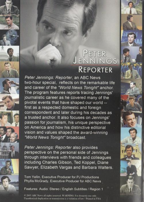 Peter Jennings: Reporter DVD VIDEO DOCUMENTARY journalism ABC News career life