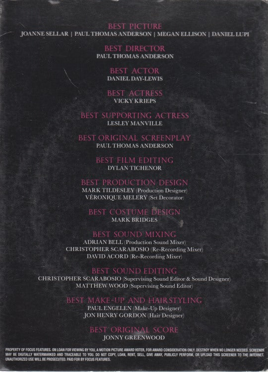Phantom Thread FYC BLU-RAY VIDEO MOVIE Drama Paul Thomas Anderson Daniel Day '17