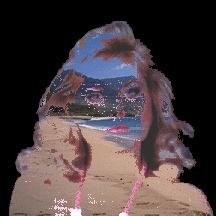 Chroma key is consider more powerful than the blue screen technique because it allows the user to key on any color. Figure 3 is a chroma key example. In this picture we chroma keyed on the womans skin. This allowed the second photograph of the beach scene to show through on this color.