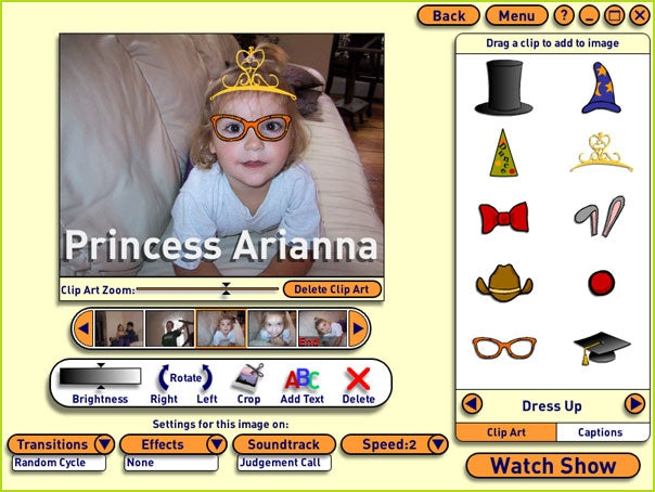PhotoShow offers a wide range of editing tools usually found only in professional-grade imaging software. With minimal effort, anyone can eliminate red eye, crop, rotate, adjust levels and more with easy to use tools.
