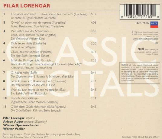 Pilar Lorengar: Prima Donna In Vienna MUSIC AUDIO CD classical opera 2005 Decca