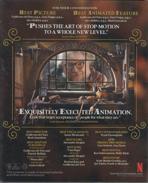Pinocchio FYC BLU-RAY VIDEO MOVIE Guillermo del Toro animated children's film