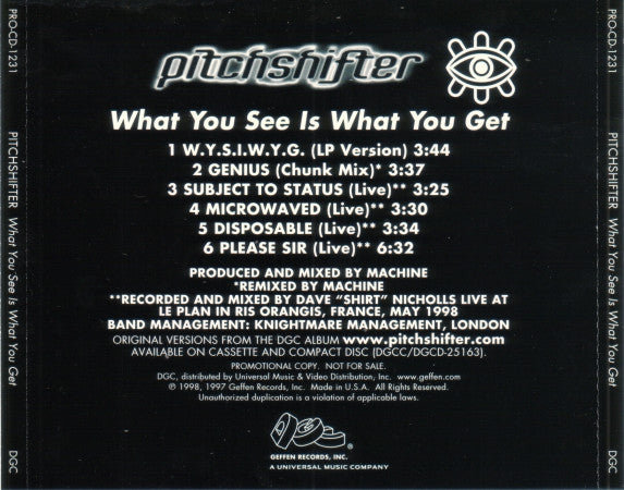 Pitchshifter: What You See Is What You Get Promo w/ Back Artwork