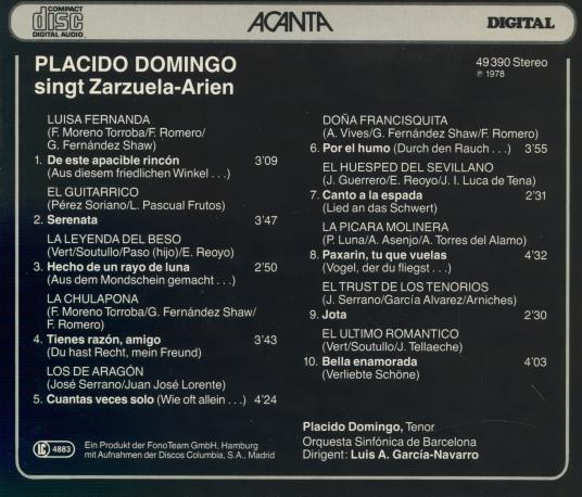 Placido Domingo: Zarzuelas MUSIC CD Singt Zarzuela-Arien 1978 opera classical!