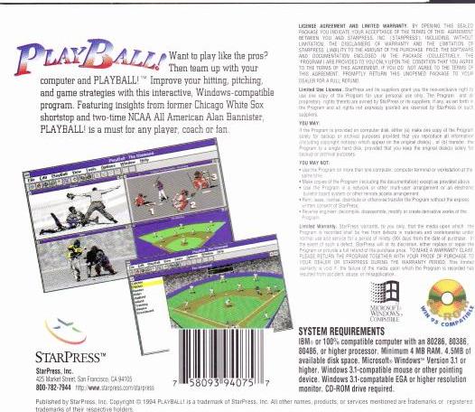 Pitch & Manage Like the Pros! Want to play like the pros? Then team up with your computer and PLAYBALL! Ty Improve your hitting, pitching, and game strategies with this interactive, Windows-compatible program. Featuring insights from former Chicago White Sox shortstop and two-time NCAA All American Alan Bannister, PLAYBALL! is a must for any player, coach or fan.