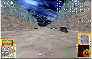 Your planet is doomed, and there is only one remaining seat on the spaceship leading citizens to safety. This will go to the winner of a sequences of races held within this futuristic world. Viewed from above and behind the car, the game boasted a lot of technologically advanced features. Computer AI adjusted to your style of driving whilst in progress. It was the first game to use MMX technology, and the first to support 3D acceleration. It also had a range of multiplayer options including networks and split-screen, and an online internet server to automatically match player. The game in this case is a simple arcade racing game - and it's pretty fun, as far as simple arcade racing games go.