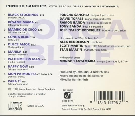 Poncho Sanchez With Special Guest Mongo Santamaria: Conga Blue MUSIC AUDIO CD