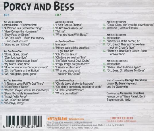 Porgy And Bess Limited 2-Disc Set MUSIC AUDIO CD classical opera historic live!
