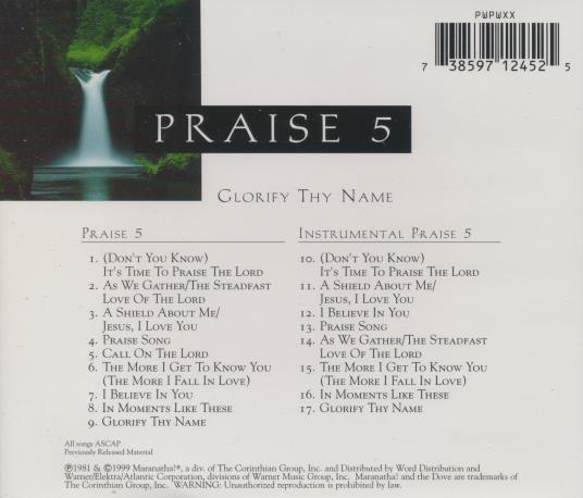 Praise 5: Glorify Thy Name MUSIC AUDIO CD classic Christian! Maranatha Singers