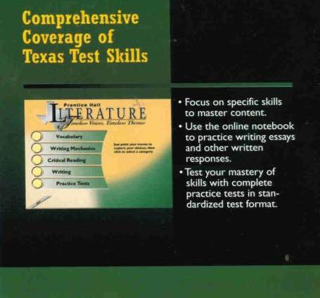 CD-ROM, Solid Prep for Texas Test. Copper Level Prentice Hall Literature - Timeless Voices, Timeless Themes. Prentice Hall Writing and Grammar - Communication in action. Self-Tests, Hints, Tutorials, Test Results, Answer Analysis